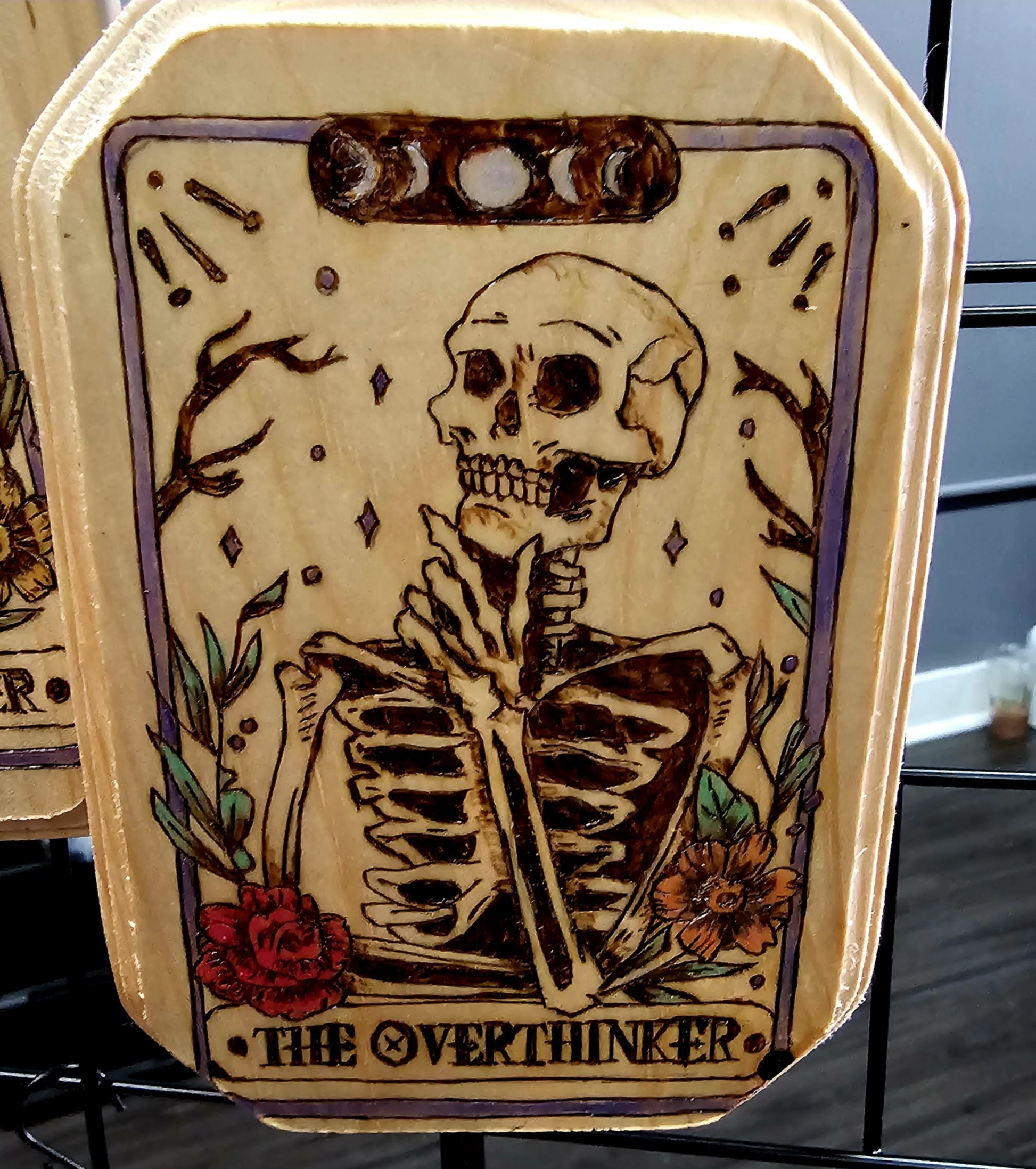 Humorous "Overthinker" Death Tarot Card Woodburning